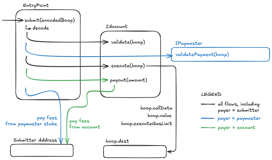 Any boop being sent must transit via the submit function of the EntryPoint contract. Its code can be found here.