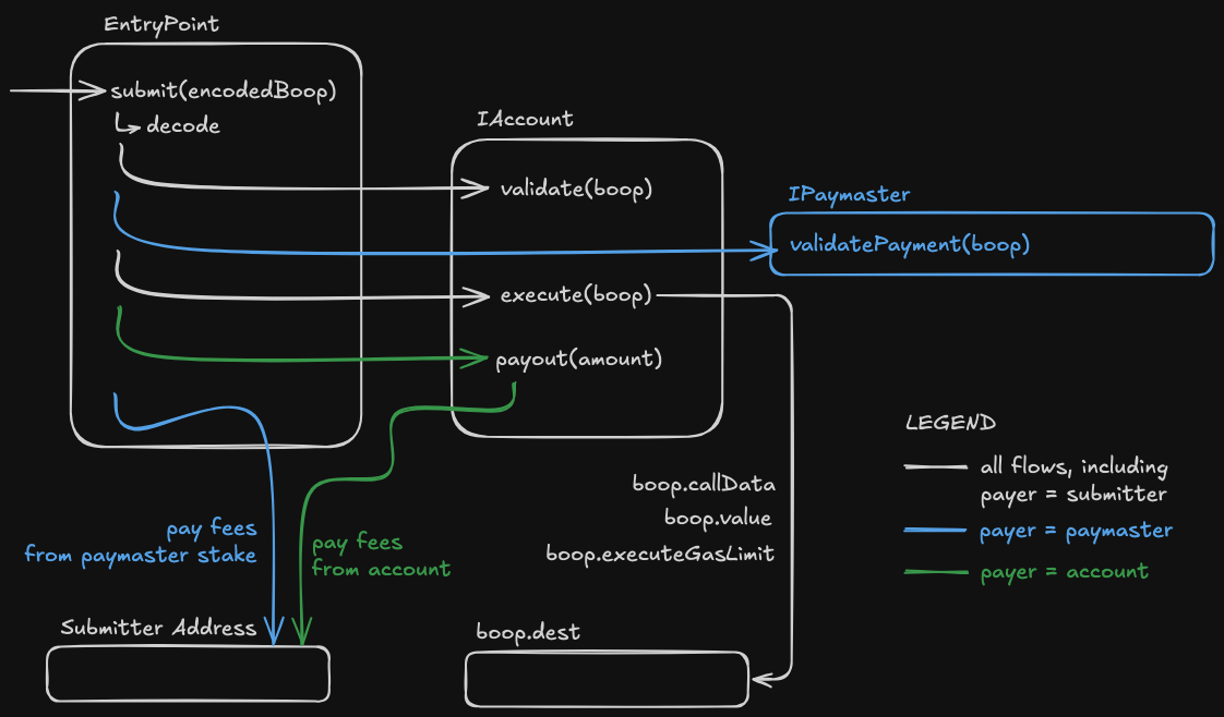 Any boop being sent must transit via the submit function of the EntryPoint contract. Its code can be found here.